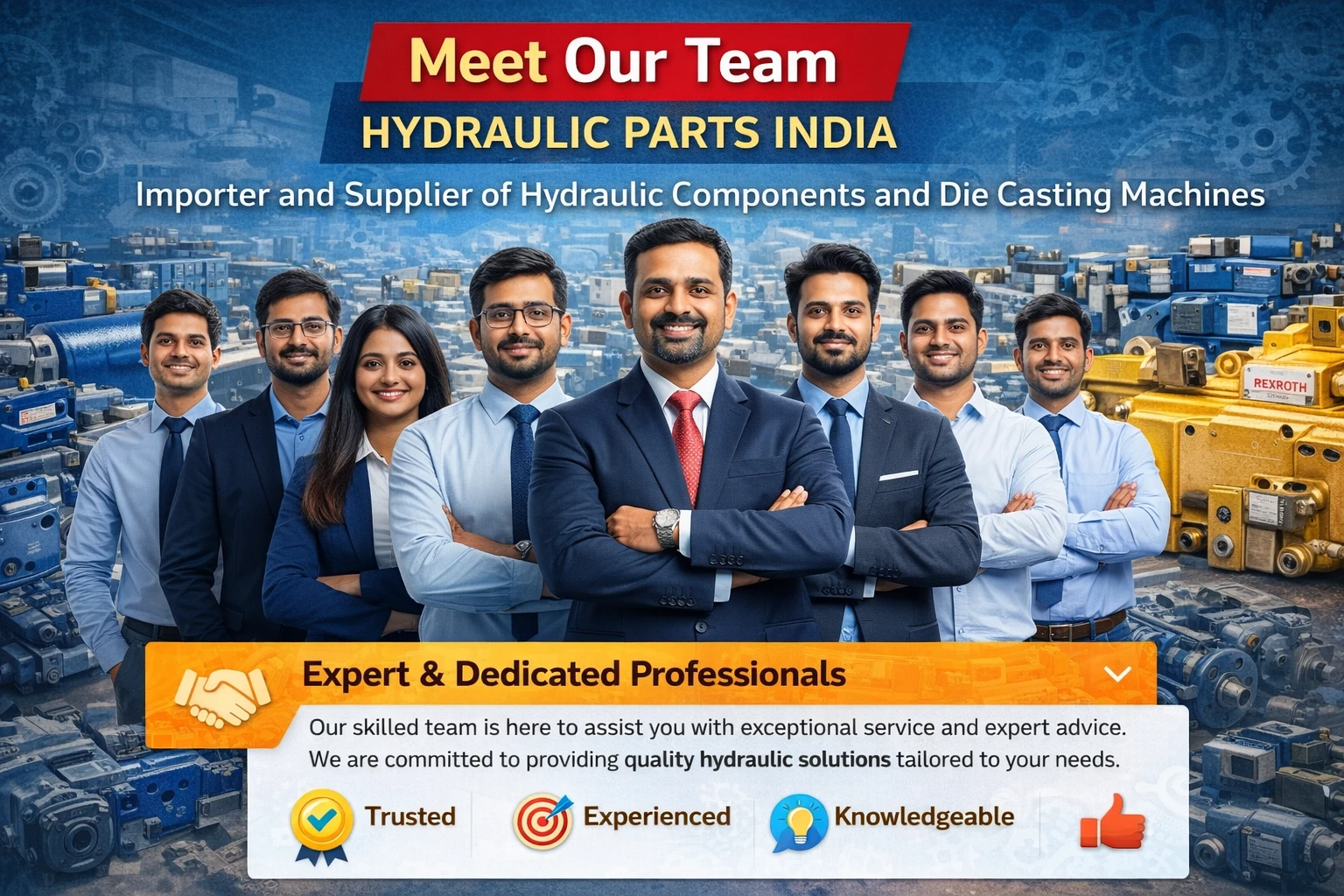 At Hydraulic Parts India, our team consists of experienced professionals with deep knowledge of hydraulic systems, industrial machinery, and global supply chains.